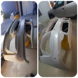 Above : BMW M4 BUMPER during repair and paint process